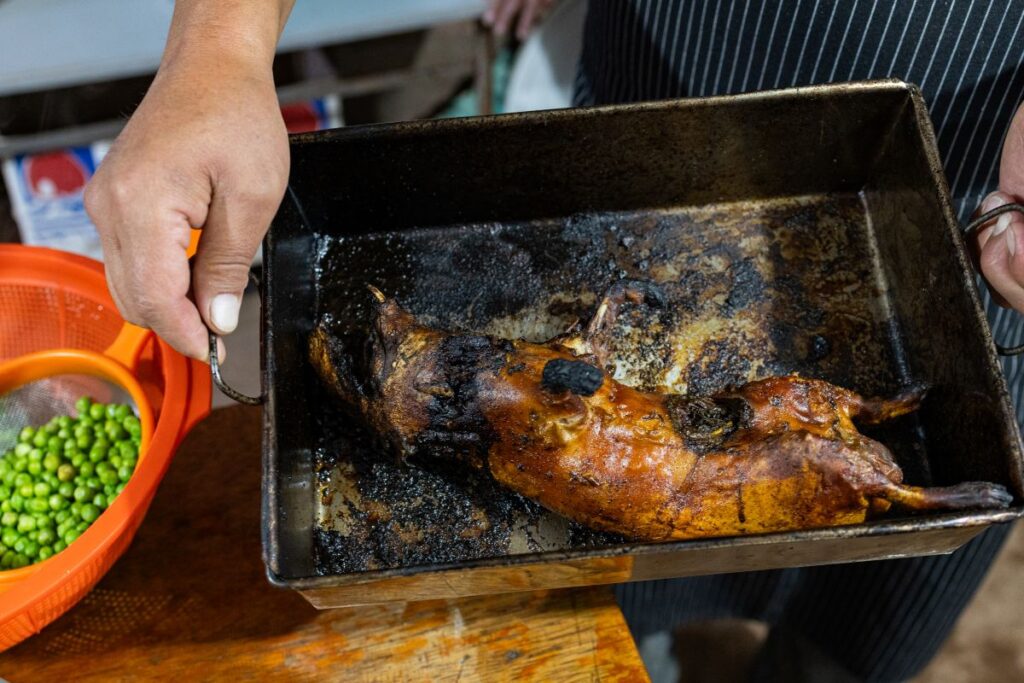 During our Peru programs, Putney groups often close out their time in the host community with a lively celebration and feast featuring roasted cuy. Students learn to prepare the dish and, after enjoying it, they compete in the traditional game of finding the elusive zorro bone, a tiny bone said to be shaped like a fox hidden deep in the skull.